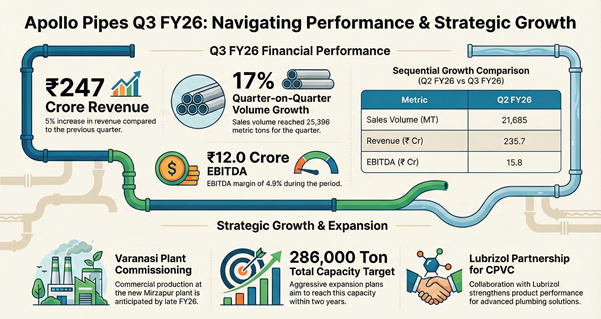 The company is currently integrating its 58.6% stake in Kisan Molding Limited, acquired in March 2024, which added approximately 58,000 tons of capacity to its portfolio. In a separate strategic move, Apollo Pipes partnered with Lubrizol to utilize proprietary TempRite technology for its CPVC piping systems, aimed at increasing win rates for high-margin infrastructure projects. Furthermore, the board confirmed that the new greenfield manufacturing plant in Mirzapur (near Varanasi) is expected to commence commercial production by the end of the 2025-26 financial year.