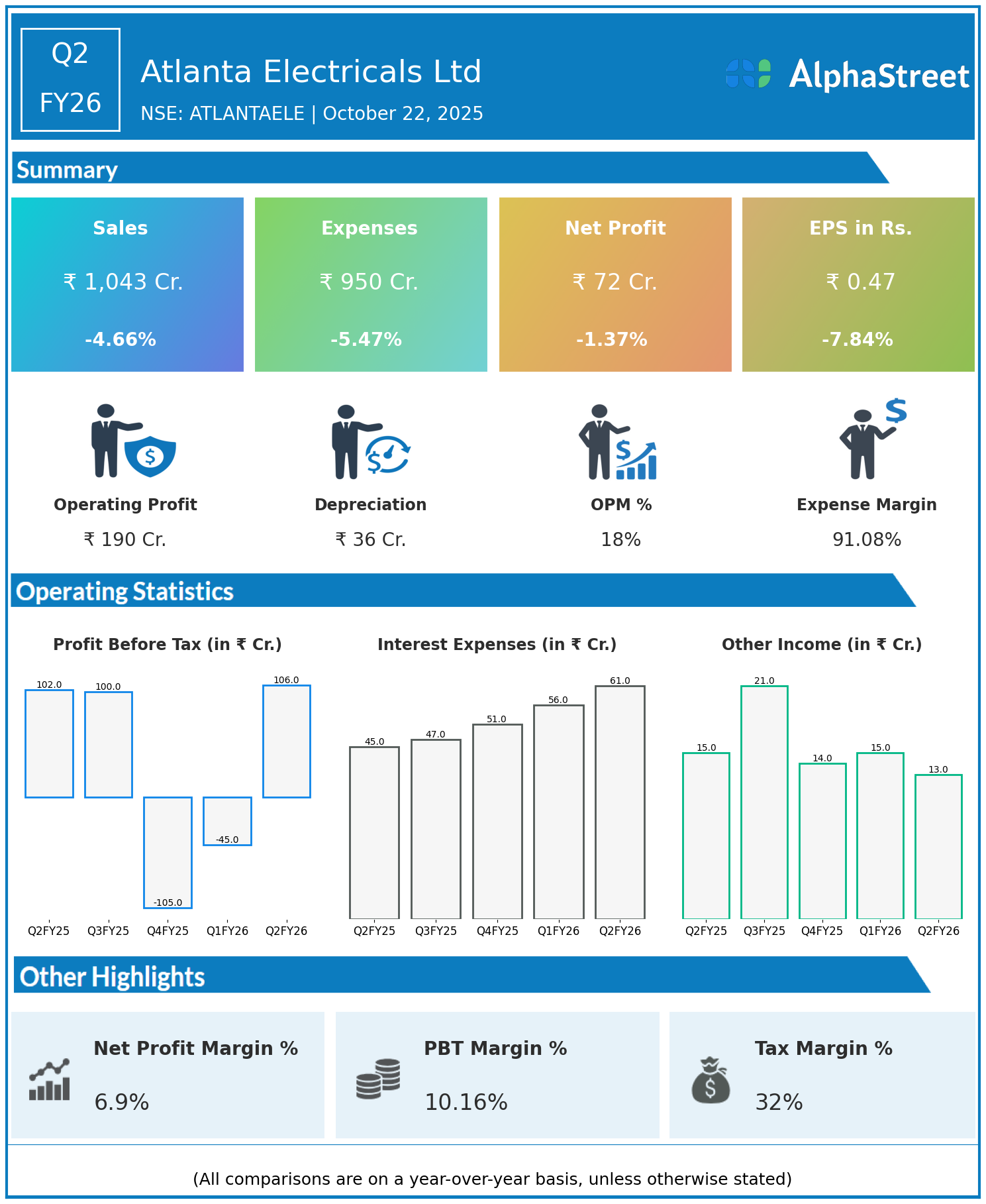 Profit Before Tax (PBT) climbed 22.6% to ₹41.97 crore from ₹34.23 crore in Q2 FY25.