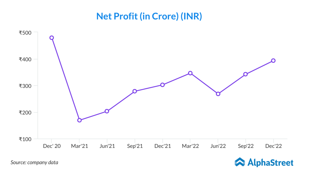 - AU Small Finance Bank’s asset quality remains pristine, with 81% of its advances originated post-pandemic having a gross non-performing asset (GNPA) ratio of only 0.6%. The bank’s asset quality performance during the COVID phase reflects the quality of its asset franchise, resiliency of its customer base, strong risk management, and tight credit filters. The bank has maintained its pristine asset quality even during the post-COVID era, with a steady decline in the GNPL ratio to 1.8% in Q3FY23 compared to 2.6% in Q3FY22 and 1.9% in Q2FY23. The strong provision coverage ratio (PCR) of 72% also provides comfort. Slippages have continued to remain at pre-COVID levels, at approximately 1.6% (Rs2.3bn), while recoveries broadly matched slippages at Rs2bn (including write-offs at Rs0.2bn). The management sounds confident about sustaining the asset quality going forward, as most of its business segments are witnessing improving cash flow and strong collections of 107% during Q3FY23.