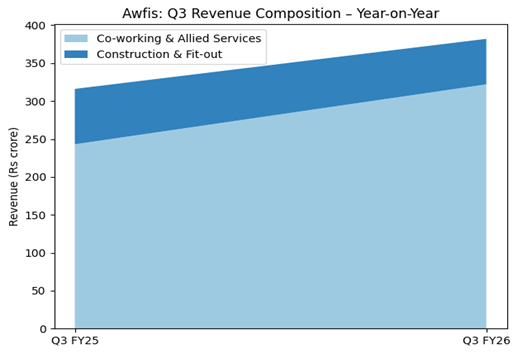 - Construction and Fit-out Projects (Awfis Transform) revenue declined 18% YoY to ₹60 crore, reflecting lower execution during the quarter.