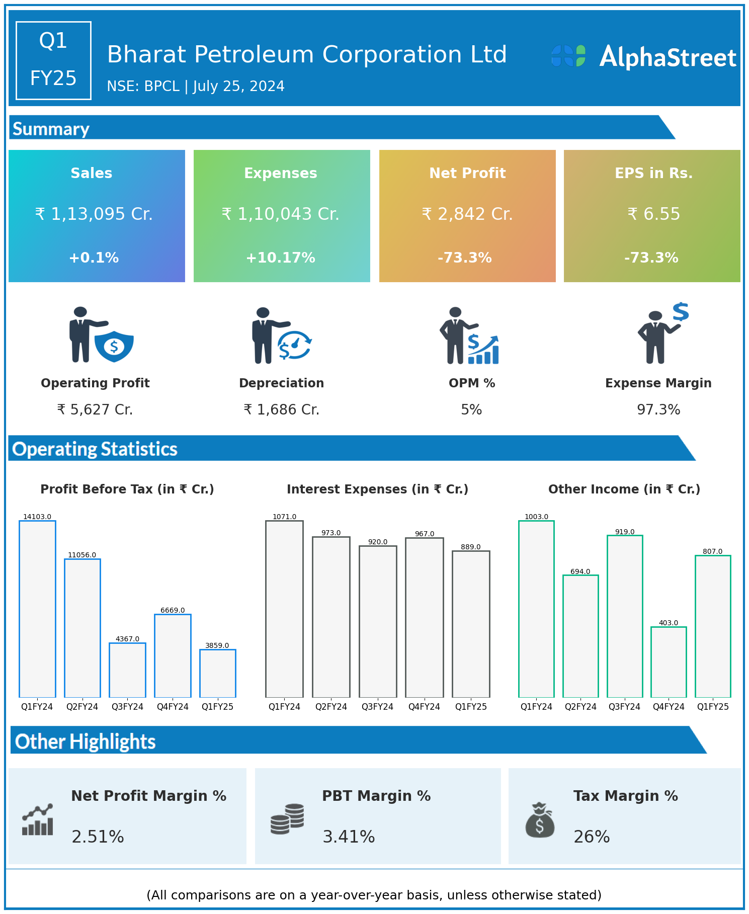 Total Expenses for Q1FY25 of ₹1,10,043.00 Crores up from ₹99,885.00 Crores year on year, a rise of 10.17%.