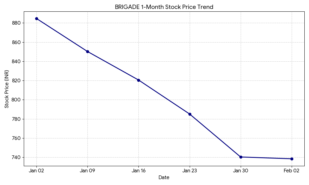 Brigade Enterprises Limited (NSE: BRIGADE) shares closed at INR 738.40 on February 2, 2026, recording a 0.14% intraday decline on the National Stock Exchange. The stock reached a session high of INR 745.40 and a session low of INR 727.00. The company’s market capitalization stands at INR 180.60 billion.