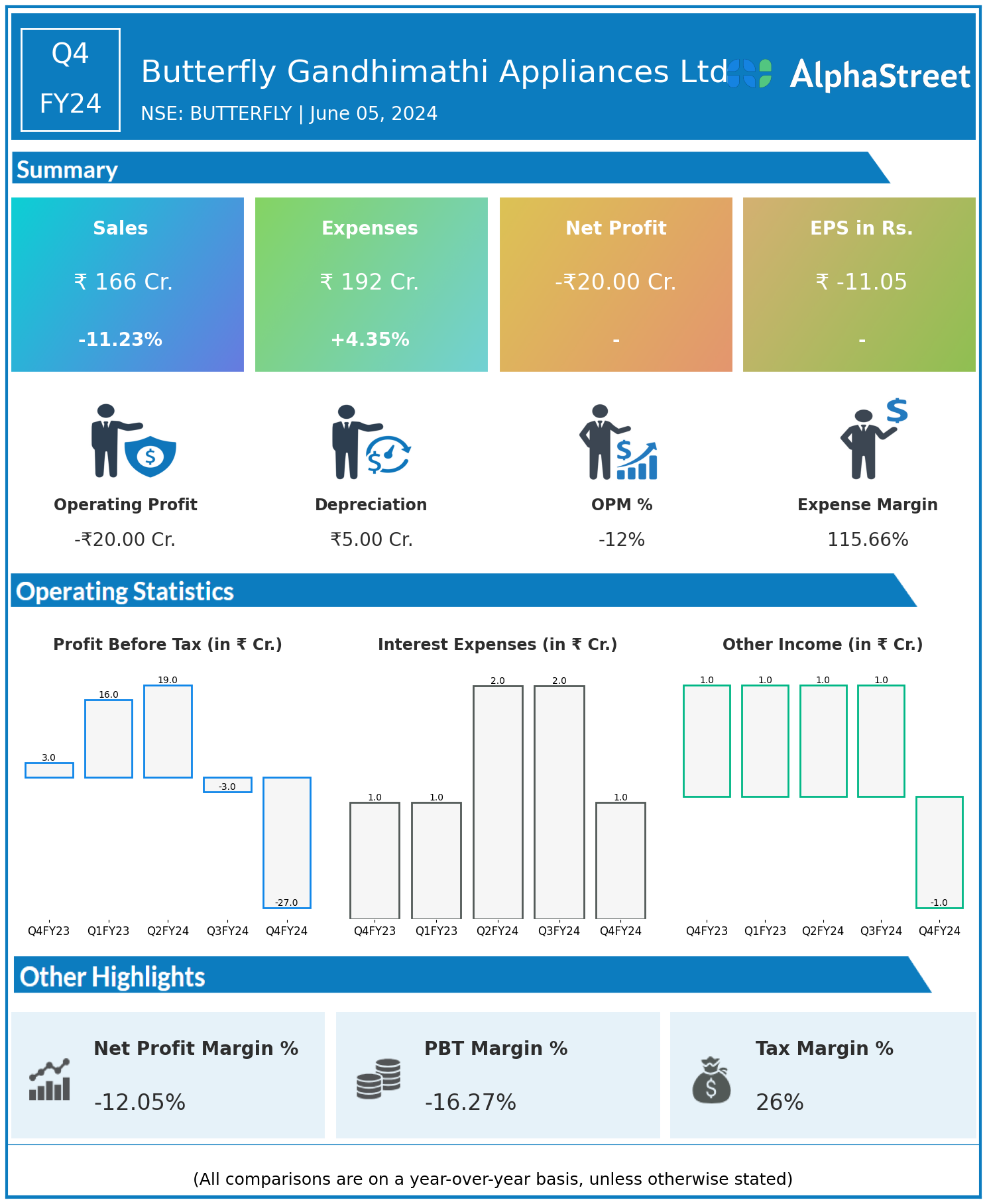 Total Expenses for Q4FY24 of ₹192.00 Crores up from ₹184.00 Crores year on year, a rise of 4.35%.