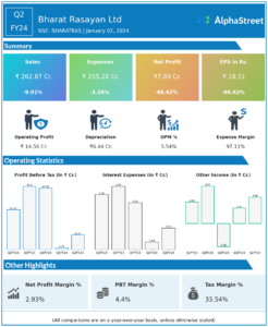 Bharat Rasayan Ltd Q2FY24; 67% fall in Profits