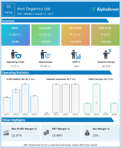 Ami Organics Ltd Q1FY24; 13% rise in Profits
