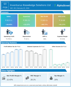 Executive Summary Inventurus Knowledge Solutions Ltd reported Q3FY26 revenues of ₹815 crore, up 24.05% YoY, with consolidated net profit increasing...