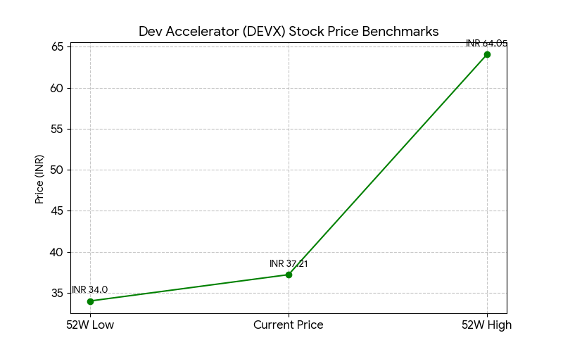 Dev Accelerator Ltd (NSE: DEVX) shares ended at INR 37.21 on Monday, February 2, 2026, representing an intraday decrease of 3.33%. The stock reached a session high of INR 39.16 and a low of INR 36.42, closing INR 1.28 lower than the previous close on the National Stock Exchange.
