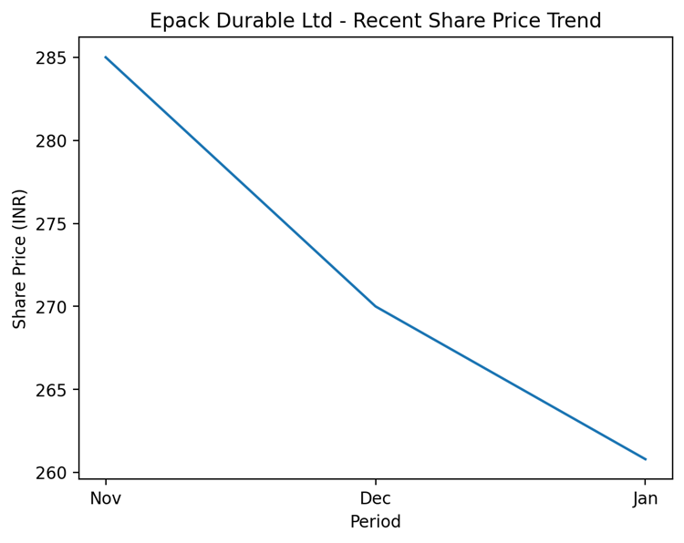 Epack Durable Ltd (NSE: EPACK, BSE: 544095) shares closed at around ₹260.8 on Wednesday, down approximately 2.4% from the prior session’s close, following the company’s announcement of its third quarter fiscal 2026 results.