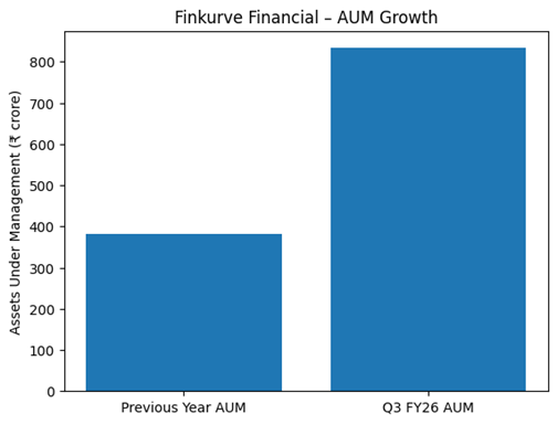 Finkurve reported a 119% year-over-year increase in AUM to 833.15 crore. Retail gold loans now constitute 93% of the product mix. Total income for Q3 FY26 rose 31.19%. Net non-performing assets decreased to 0.54%. The company currently operates 98 branches across India.