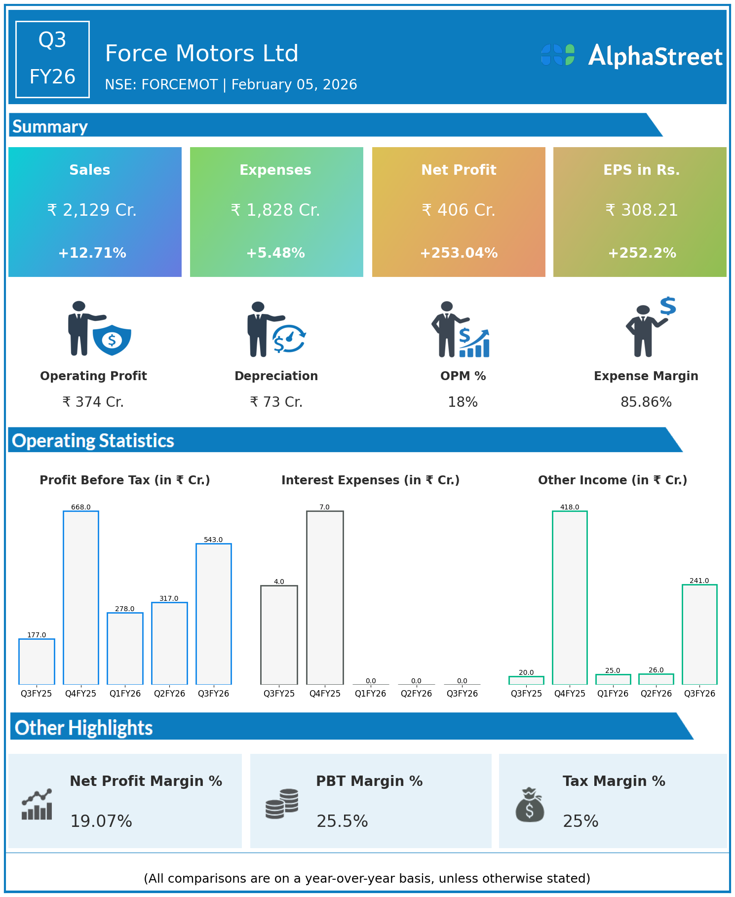 Revenues expanded to ₹2,129 crore from ₹1,889 crore YoY, reflecting 12.71% growth across multi-utility vehicles, light CVs, and agricultural tractors for Middle East, Asia, and African markets. Total expenses rose only 5.48% YoY to ₹1,828 crore, delivering superior margin leverage.