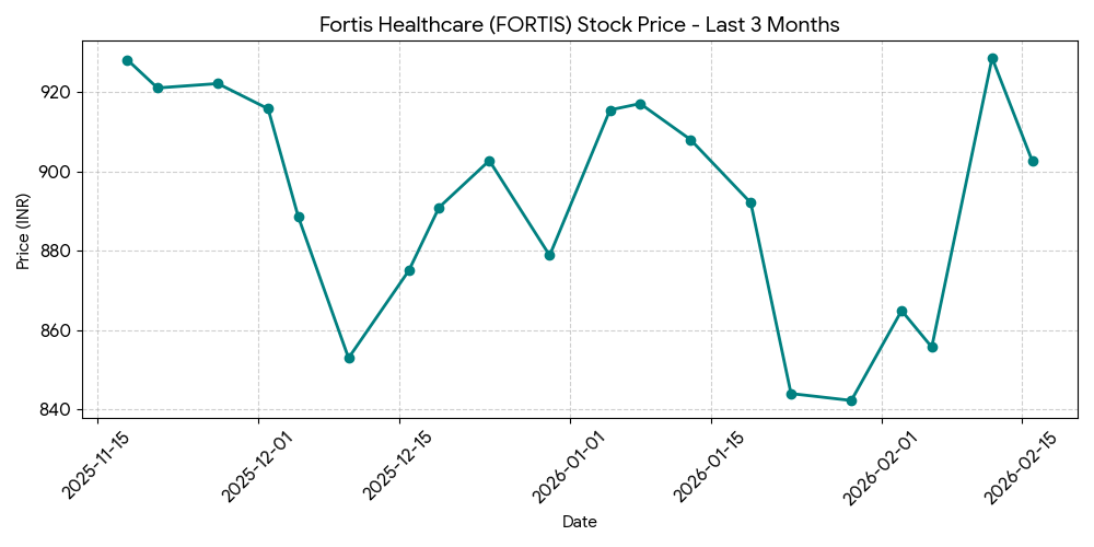 Fortis Healthcare Ltd (FORTIS) shares ended lower on the National Stock Exchange and Bombay Stock Exchange on Monday, February 16, 2026, following the disclosure of its third-quarter financial results. The stock closed at ₹916.75 on the NSE, representing an intraday decline of 1.23%. Trading volume for the session reached approximately 1.22 million shares as investors reacted to the interplay between operational growth and one-time statutory expenses.