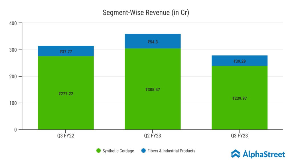“The current quarter results have been impacted due to delay in orders from our customers in the industrial and sports businesses on account of recessionary pressures in Europe and the USA. We saw customers adjusting stocks in the third quarter significantly. We expect this to be short term in nature and will get corrected from the first quarter of FY24.”