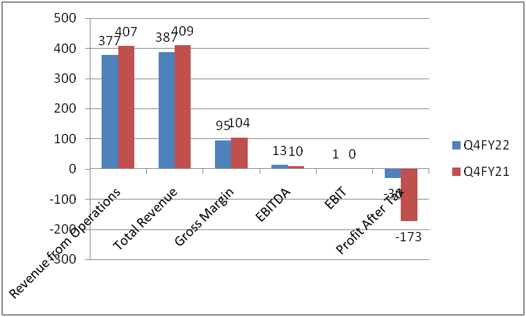 In Q4 FY 2022 Business revenue increased to 304 Crores. Revenue from MSME and SME and retail accounts stood at 42%. Gross profit stood at 95 Crores as compared to 104 Crores in Q4 FY2021. GP margins for Q4 FY2022 stood at 24.7%. Consolidated EBITDA for Q4 FY2022 increased by 32% Y-O-Y to Rs. 13 Crores. EBITDA margins for Q4 FY2022, improved by 100 basis points. Total debt reduced by Rs 11 Crores for Gati KWE. The cost of debt declined by 7.2%.