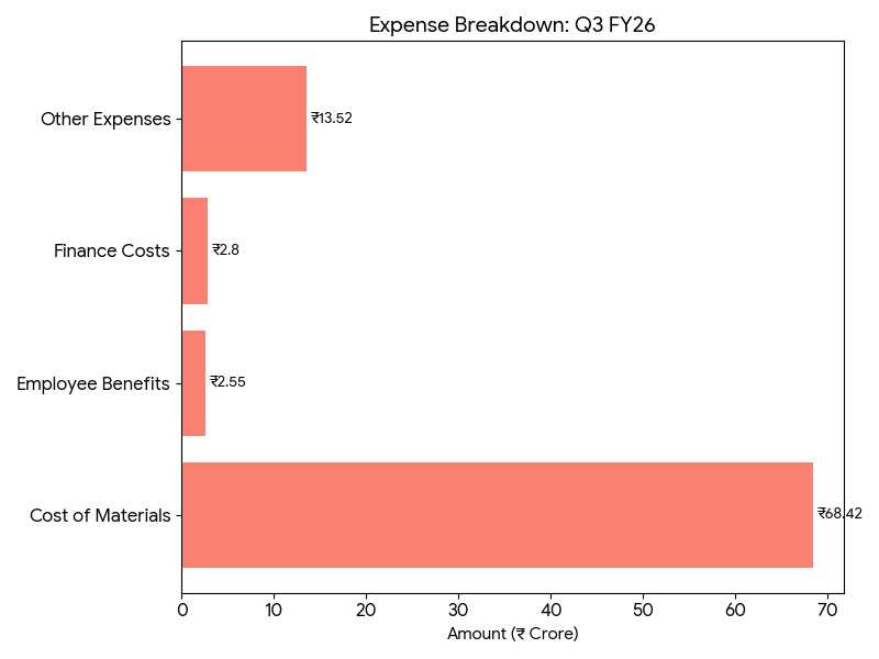 For the nine months ended December 2025, consolidated revenue declined to ₹2,560.61 million from ₹3,017.38 million in the year-ago period. Nine-month consolidated profit fell to ₹4.11 million, compared with ₹257.79 million a year earlier.