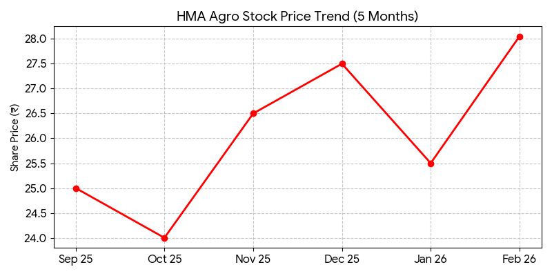 HMA Agro Industries Limited (NSE: HMAAGRO; BSE: 543929) shares declined 6.87% on Friday, closing at ₹28.05 on the National Stock Exchange. The company, a leading Indian exporter of frozen buffalo meat, reported its financial results for the quarter ended December 31, 2025.