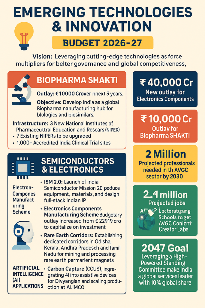 In a move to cement India’s position as a global technology powerhouse, Finance Minister Nirmala Sitharaman unveiled the Union Budget 2026-2027, placing “cutting-edge technologies” and “frontier sectors” at the heart of the nation’s economic strategy. The budget outlines a robust roadmap for emerging technologies, signaling a shift from traditional manufacturing to high-tech, IP-driven industrial growth.