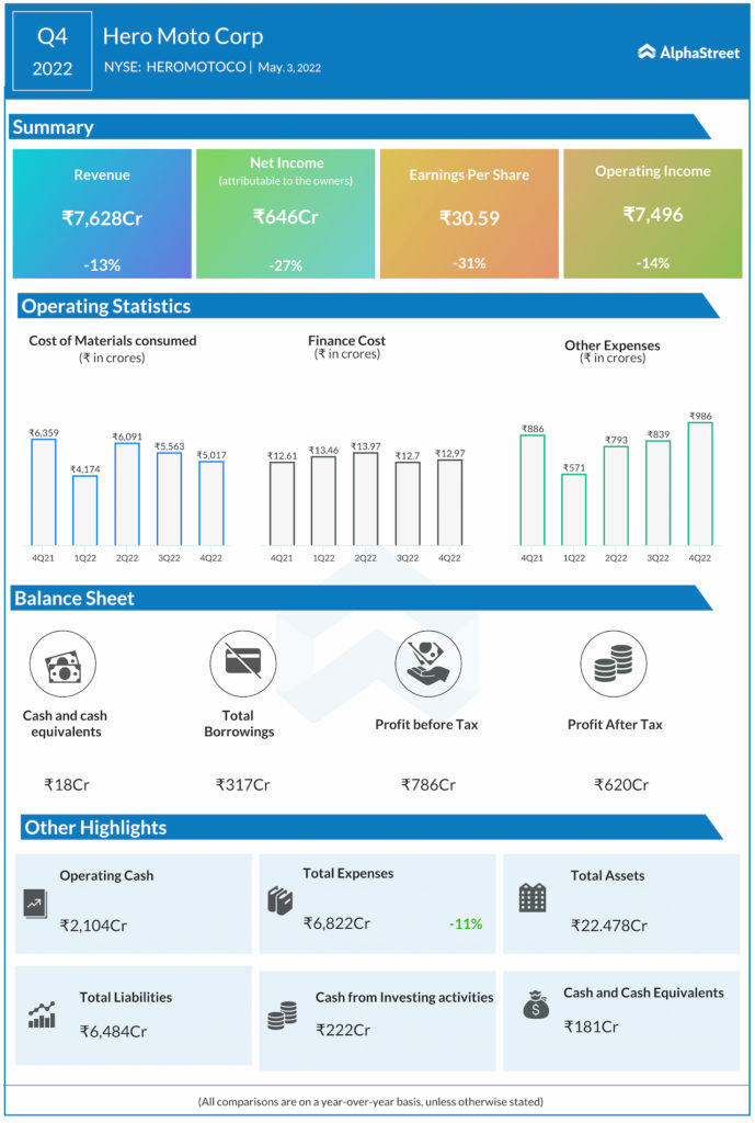 Hero MotoCorp Limited(NSE: HEROMOTOCO) posted its fourth-quarter 2022 earnings.