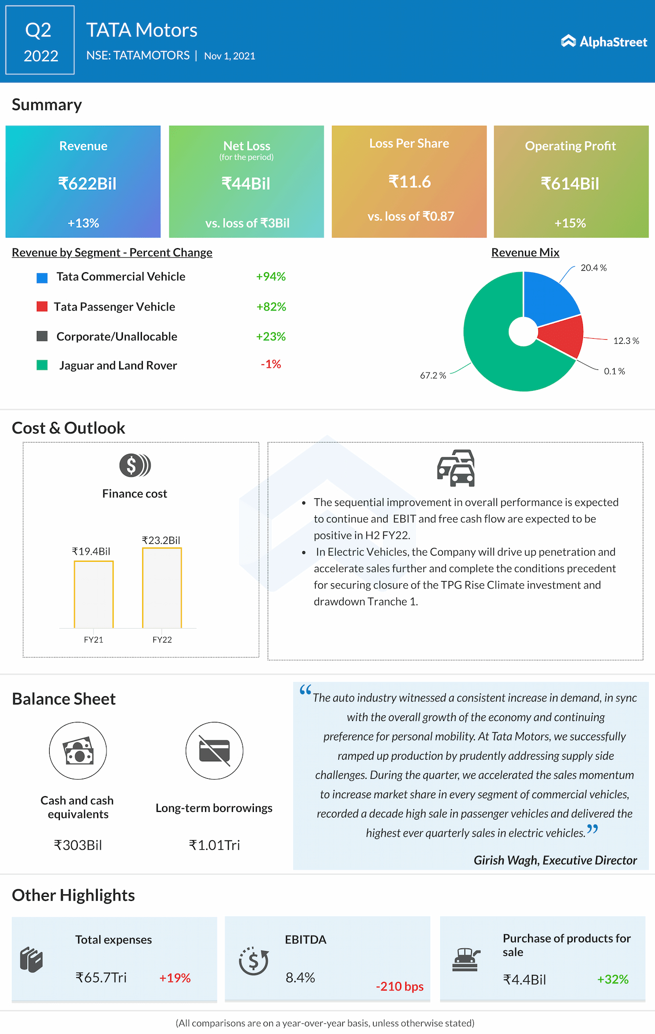 Tata Motors Ltd. (NSE: TATAMOTORS) reported its second-quarter 2022 earnings results today after the closing bell.