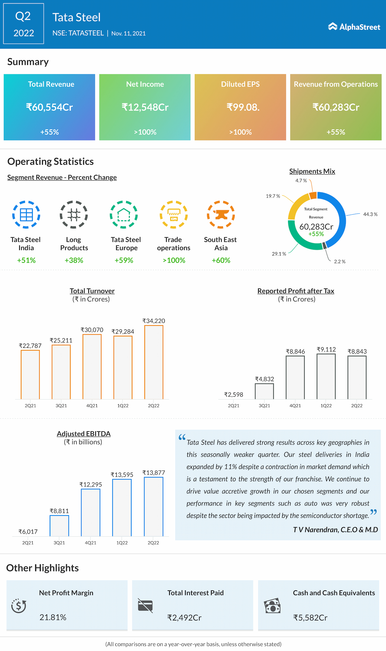 Tata Steel Limited(NSE: TATASTEEL) reported its second-quarter 2022 results on Thursday after the market hours.