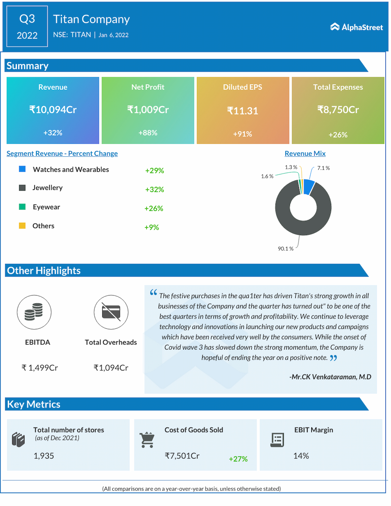 Titan Company (NSE: TITAN) reported its third-quarter 2022 earnings results.