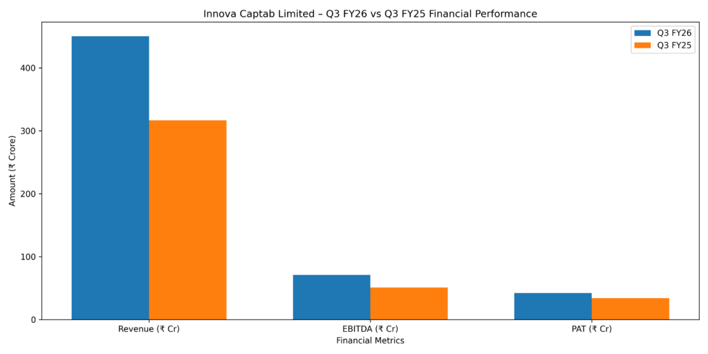 Innova Captab Limited (NSE: INNOVACAP | BSE: 544067) announced its unaudited financial results for the third quarter and nine months ended December 31, 2025, on January 23, 2026. The company, a leading integrated pharmaceutical player, demonstrated a significant acceleration in revenue growth driven by its dual focus on Contract Development and Manufacturing Organization (CDMO) services and Branded Generics.
