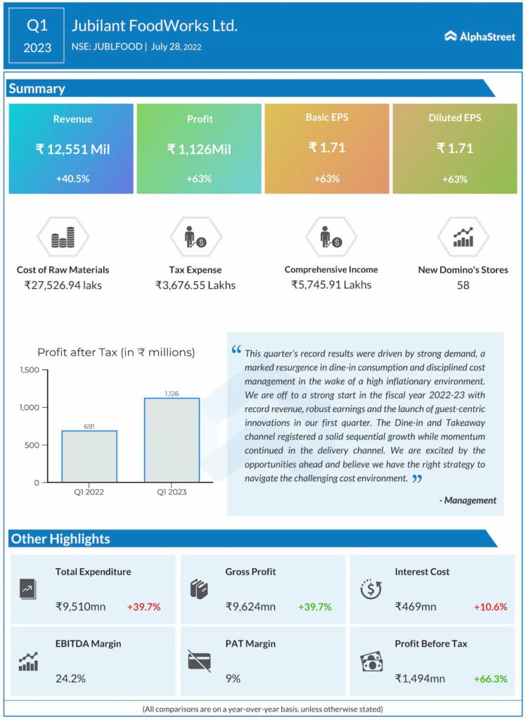 In this quarter’s results, showed that even with inflationary pressures, profits have grown. Dine-In segment has shown strong growth this quarter.