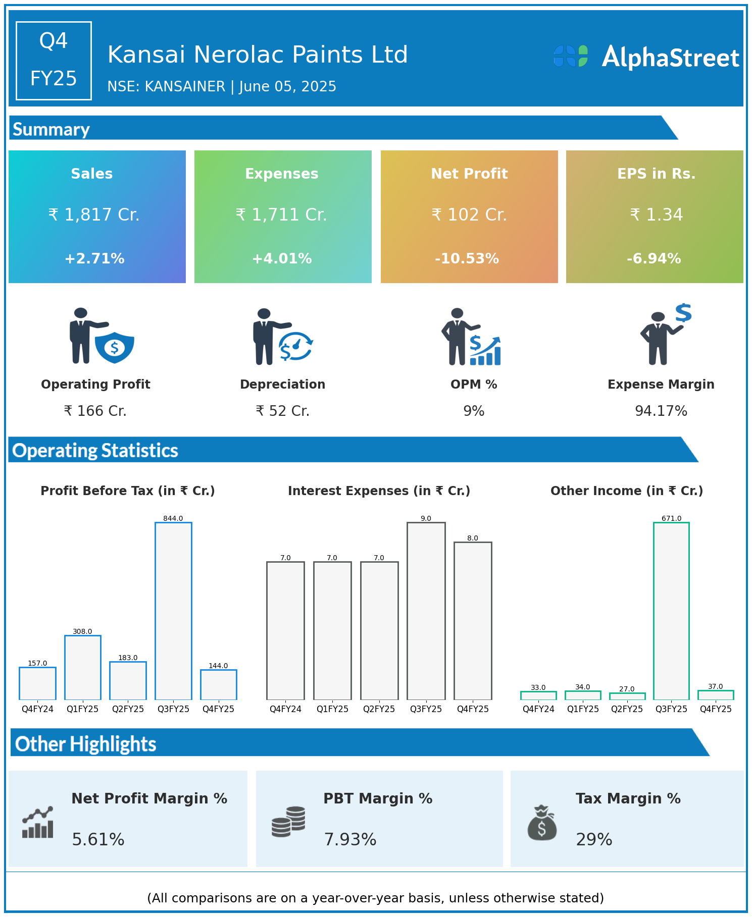 Total Expenses for Q4FY25 of ₹1,711.00 Crores up from ₹1,645.00 Crores year on year, a rise of 4.01%.
