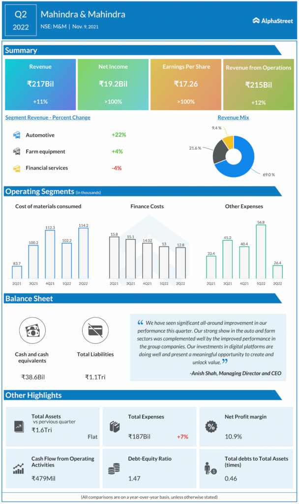 Mahindra & Mahindra Limited (NSE: M&M) reported second-quarter 2022 earnings results today.
