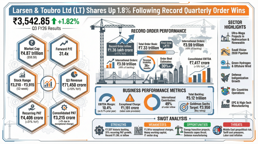 - Order Inflow Momentum: Record ₹1.36 lakh crore quarterly inflow exceeded market estimates by over 30%.