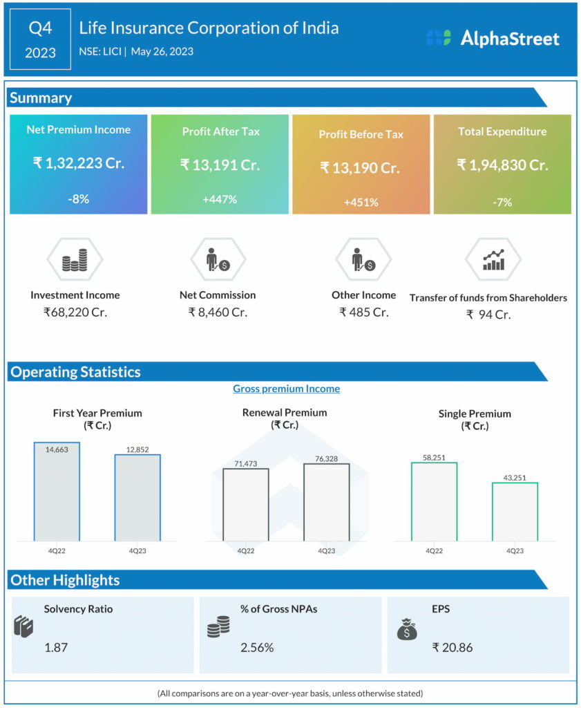 LIC Q4FY23; 447% Growth in Profits