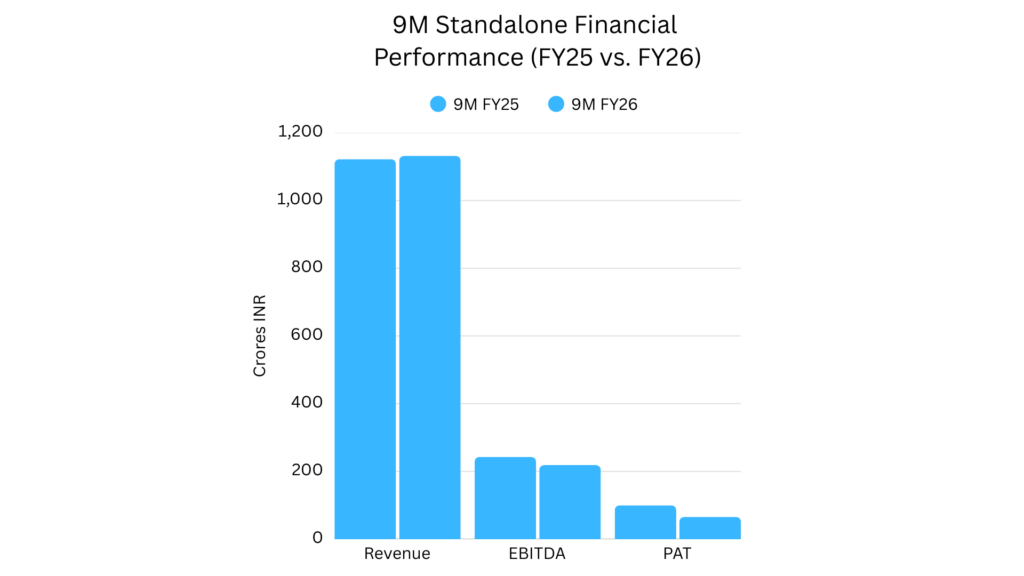- Domestic sales emerged as a point of strength, growing to ₹693.44 crore in the 9M period. Conversely, export activity remained measured, totaling ₹422.45 crore, as global markets reacted to macroeconomic headwinds.