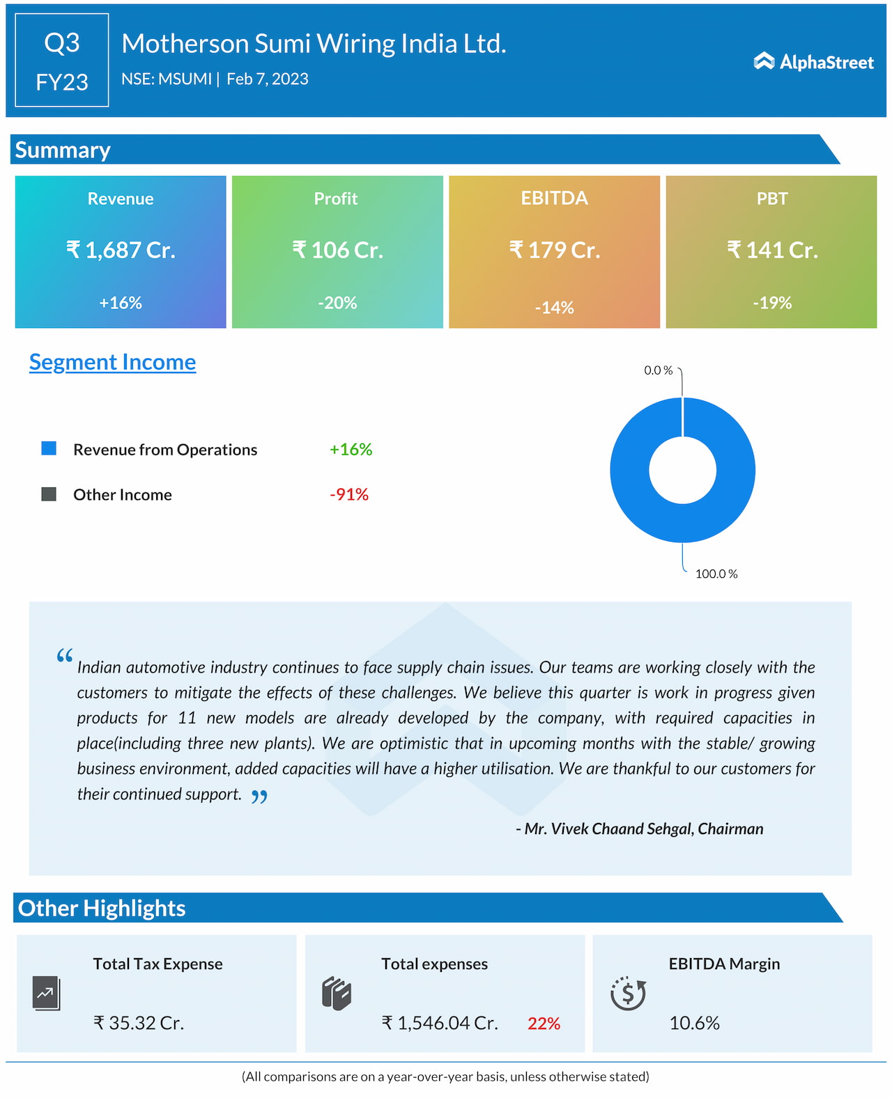 Motherson Sumi Wiring Q3FY23; 20% Fall in Profits