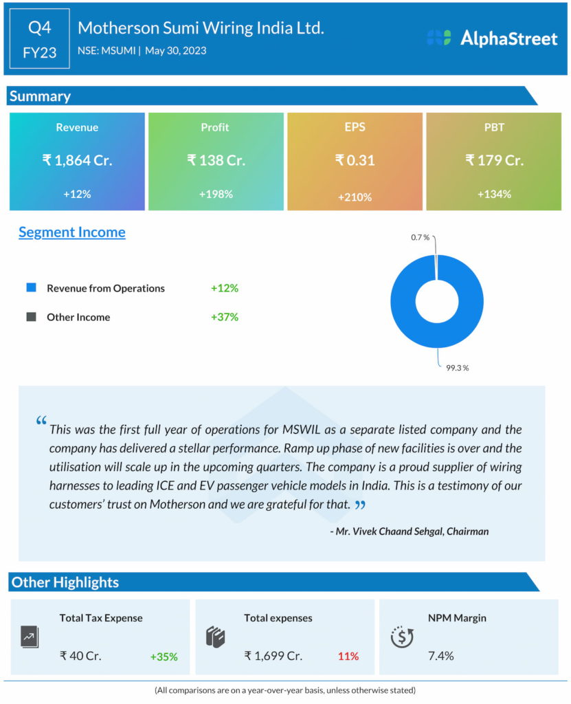Motherson Sumi Wiring Q4FY23; 198% Growth in Profits
