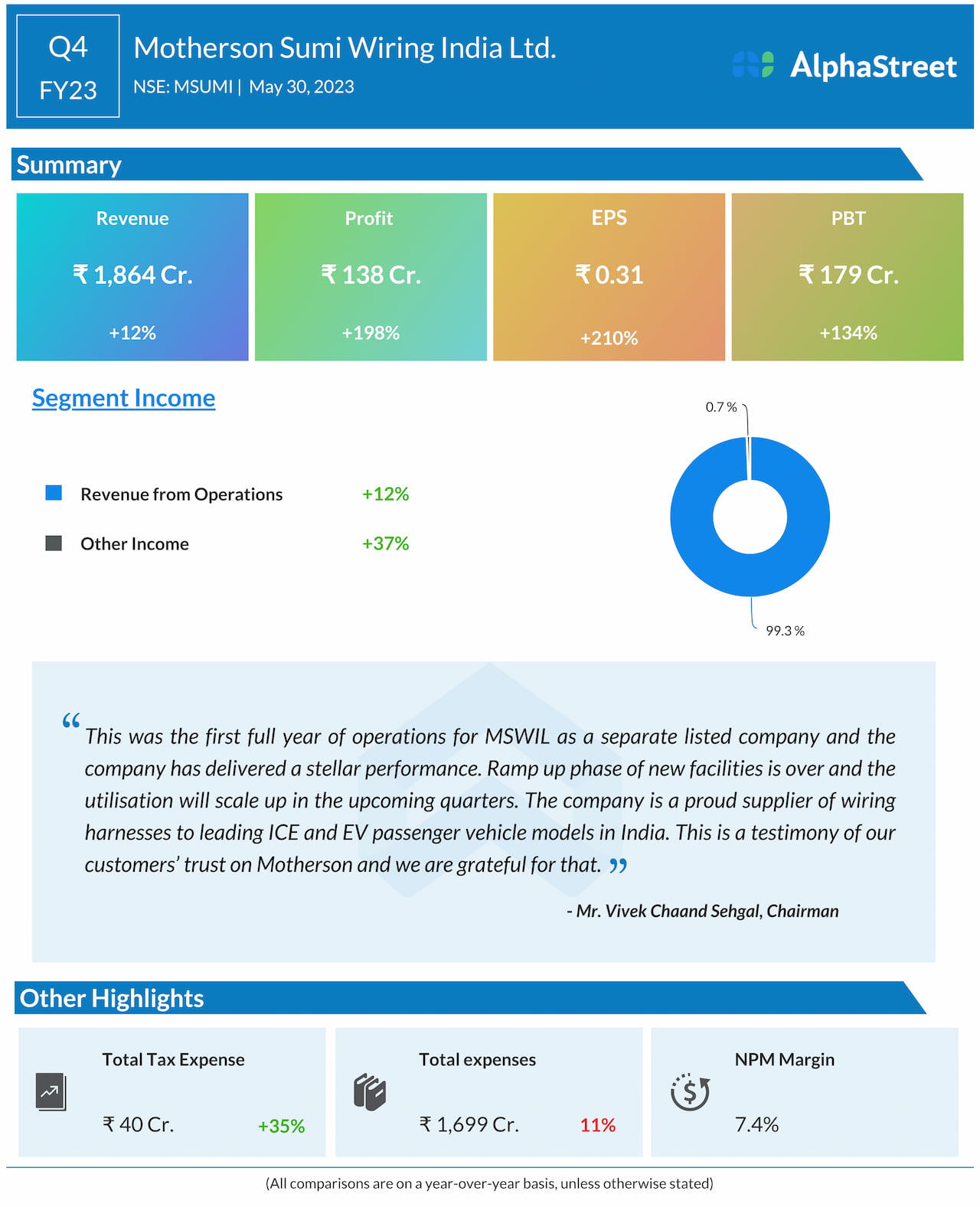 Motherson Sumi Wiring Q4FY23; 198% Growth in Profits