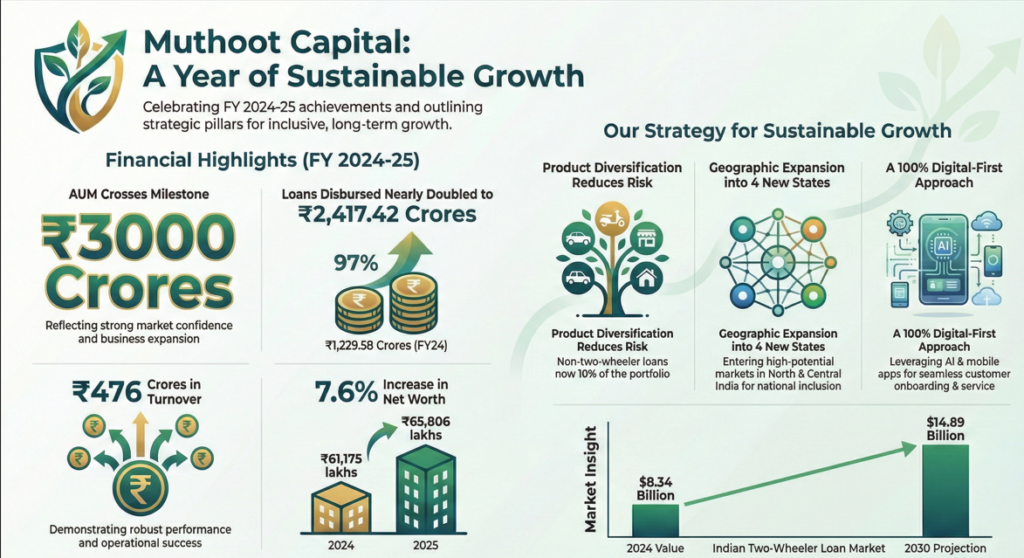Muthoot Capital Services Limited (MCSL) has reported a transformative fiscal year 2024-25, characterized by record-breaking operational milestones and a significant shift toward a multi-product business model.
