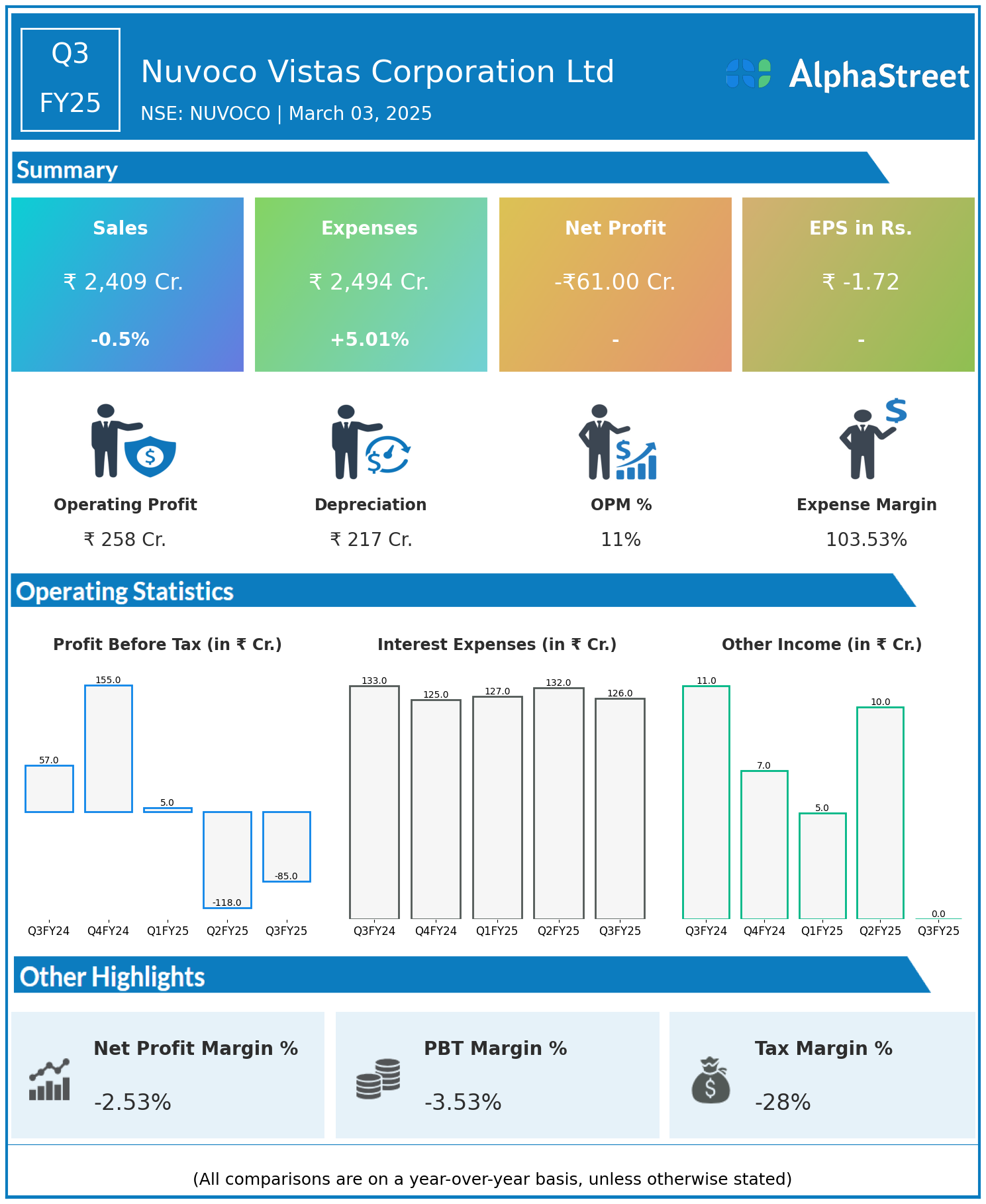 Total Expenses for Q3FY25 of ₹2,494.00 Crores up from ₹2,375.00 Crores year on year, a rise of 5.01%.