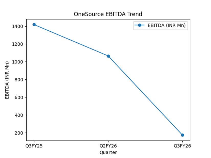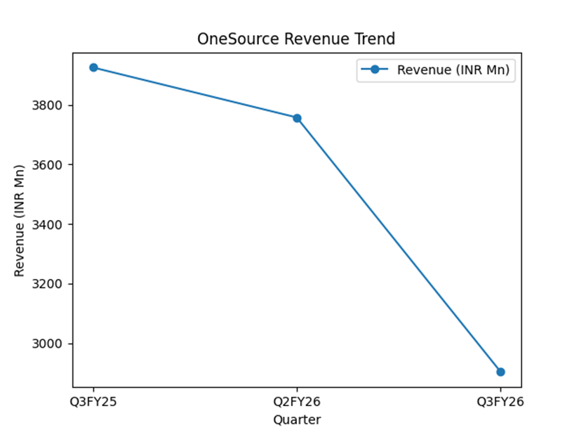 OneSource reported revenue of $33.1 million in Q3 FY26, compared with $42.9 million in Q2 FY26 and $44.8 million in Q3 FY25. The company reported EBITDA of $2.0 million and an EBITDA margin of 6%.