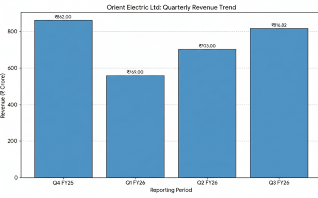For the third quarter of the 2025-26 fiscal year, Orient Electric reported consolidated revenue from operations of ₹816.82 crore, a year-over-year increase of 23.7% compared to ₹660.18 crore in the same period last year. Consolidated net profit reached ₹27.17 crore, up from ₹10.44 crore in Q3 FY25, representing a 160.2% year-over-year growth.