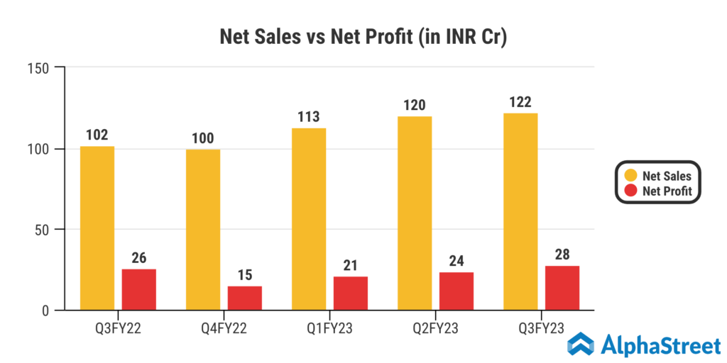 - Consolidated Net Profit of ₹28 Crore, up 8% from ₹26 Crore in the same quarter of the previous year.