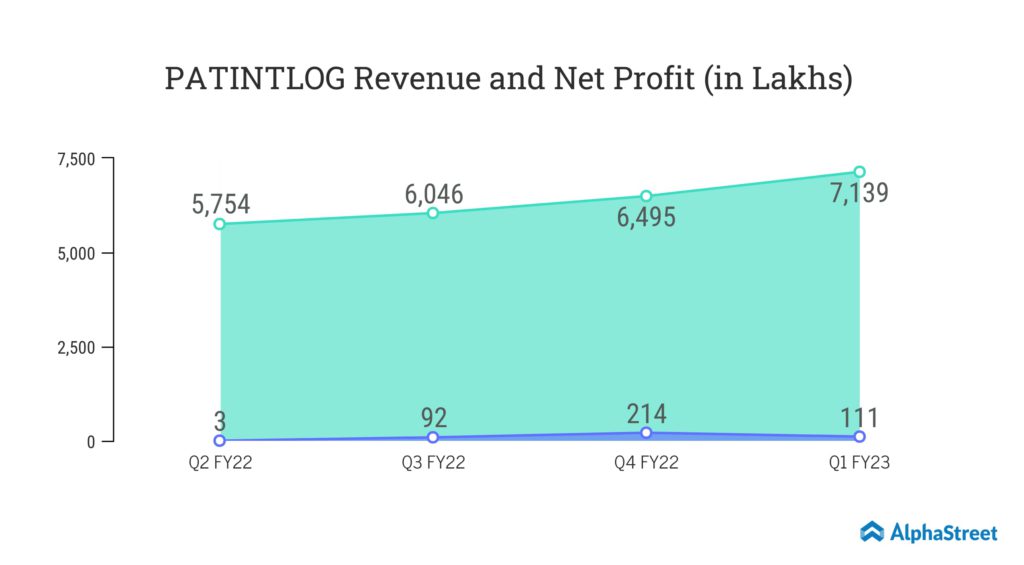 Operating revenue increased by almost 40% in Q1 2023, going from 5107 lakhs to 7139 lakhs. In comparison to last year’s loss of 81 lakhs, the net profit for this quarter is 111 lakhs. High operational and employee benefit costs were the cause of the previous year’s same quarter’s negative earnings. In the most recent quarter, these costs saw a significant reduction.