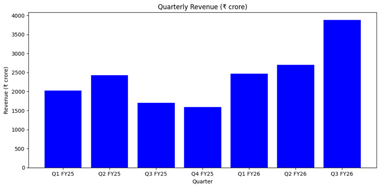 On a standalone basis, revenue from operations for Q3 FY26 increased to ₹11,294 million from ₹7,100 million a year earlier. Total standalone income was ₹12,231 million. Finance costs remained a material expense line. Profit before tax was ₹310 million, and profit after tax was ₹458 million for the quarter. For the nine months ended December 31, 2025, standalone revenue from operations reached ₹23,836 million, and net profit was ₹790 million.