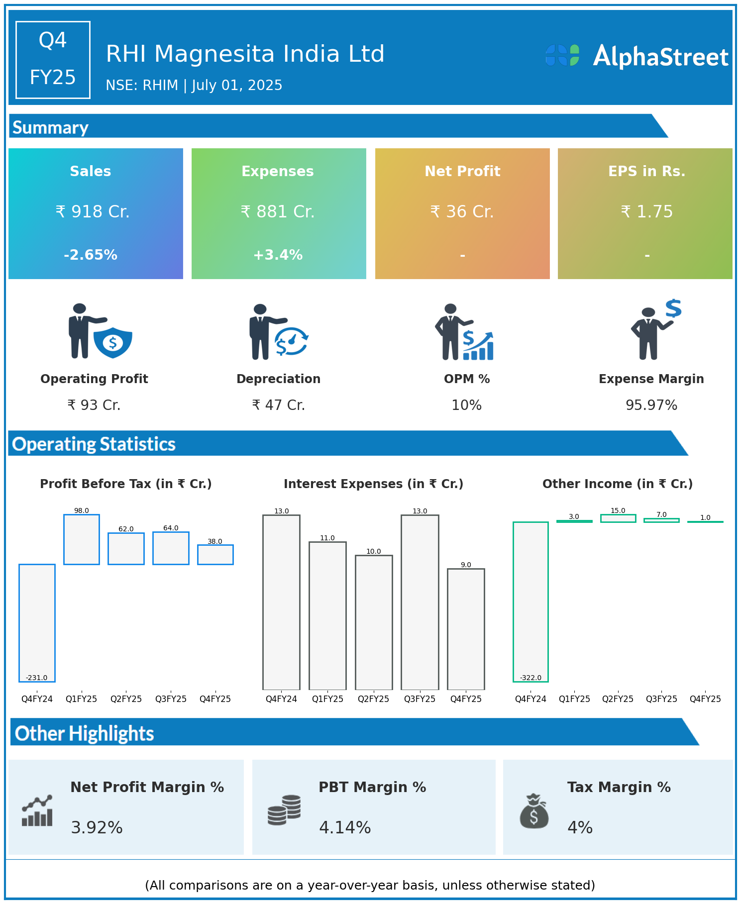 Total Expenses for Q4FY25 of ₹881.00 Crores up from ₹852.00 Crores year on year, a rise of 3.4%.