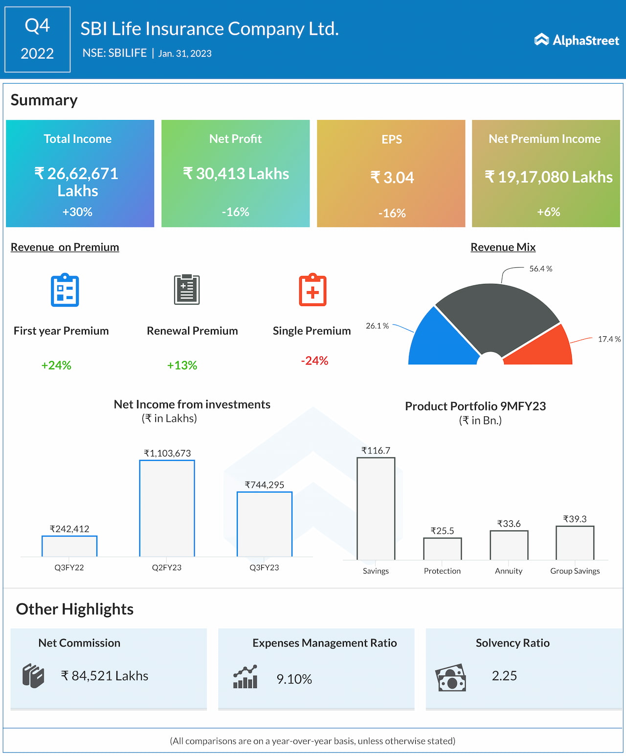 SBI Life Insurance Limited Q3FY23; 16% Fall in Profits