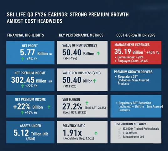 SBI Life Insurance Company Ltd. (NSE: SBILIFE) on Wednesday reported a 5% rise in its third-quarter net profit, as a surge in premium collections and recent tax exemptions on individual policies offset a sharp increase in management expenses.