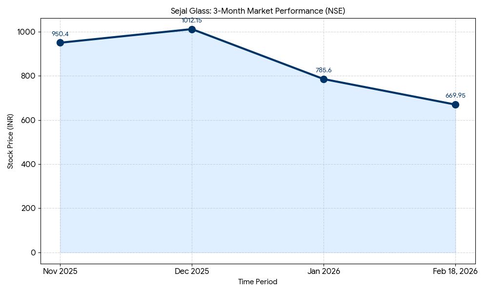 Sejal Glass Limited (NSE: SEJALLTD, BSE: 532993) shares closed at ₹669.95 today, marking an intraday decline of 3.78%. The stock fluctuated between a high of ₹695.70 and a low of ₹665.00 during the session.