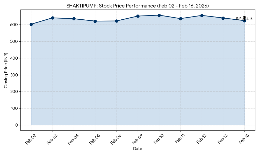 Shakti Pumps stock fell 3.80% today to close at INR 3,023.90. The company reported a 69.53% decline in quarterly net profit and a 15.07% drop in revenue. While domestic execution slowed to manage balance sheet health, the export segment grew by 40.5%. The company continues to operate with a diversified order book exceeding INR 2,100 crore.