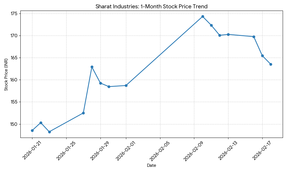 Performance Summary Sharat Industries shares declined 1.18% today to close at 163.50. The company reported a 47.8% rise in quarterly revenue and a 79.6% surge in net profit. Growth was driven by non-U.S. export markets and value-added product segments despite a slight contraction in operating margins.