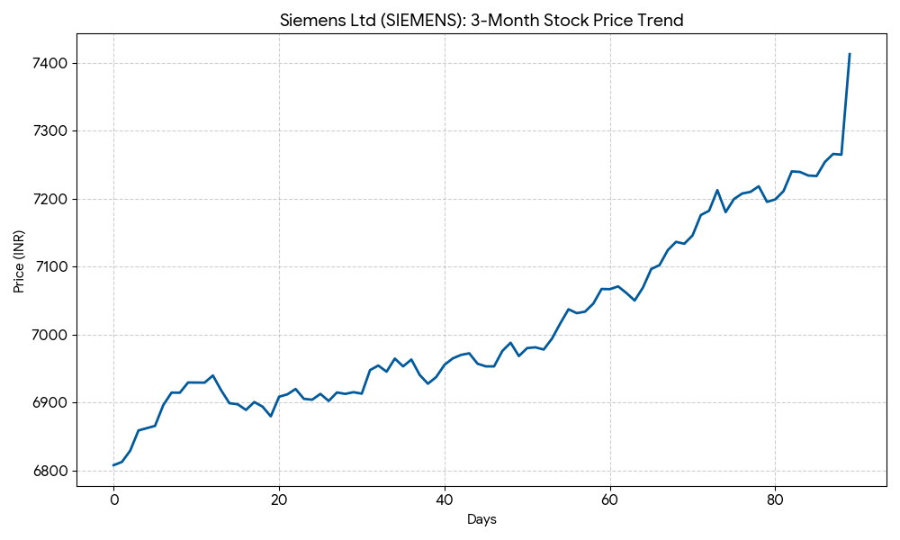 Siemens Ltd (SIEMENS.NS, SIEMENS.BO) shares closed at INR 7,412.50 on Thursday, representing a 1.45% increase from the previous session’s close.
