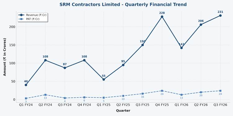 SRM Contractors Limited (NSE: SRM | BSE: 544158), a specialized engineering and construction firm focused on high-barrier infrastructure in India’s northern border regions, today released its investor presentation for the quarter and nine months ended December 31, 2025. The results underscore a period of transformative growth, highlighted by the strategic consolidation of its new subsidiary and a significant expansion in operational scale.