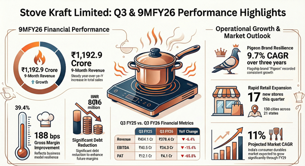 Stove Kraft Limited (NSE: STOVEKRAFT) reported weaker quarterly profitability for the three months ended December 31, 2025, amid softer revenues and margin compression.